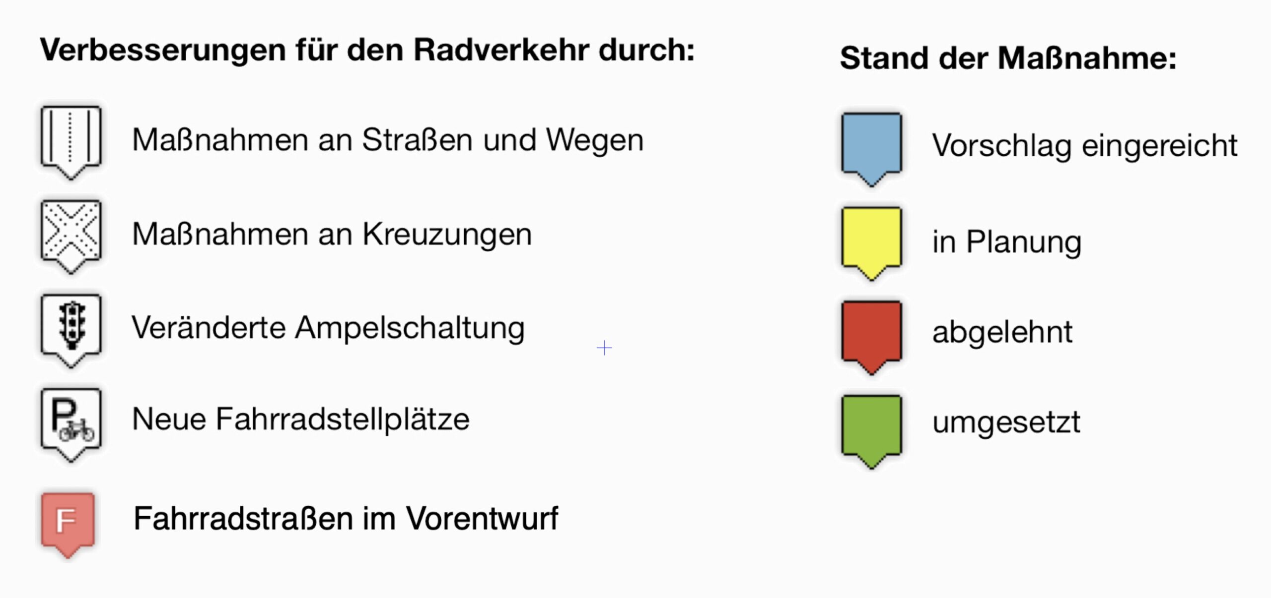 An diesen Stellen im Straßennetz wollen wir kurzfristige Verbesserungen für Radfahrende erreichen.